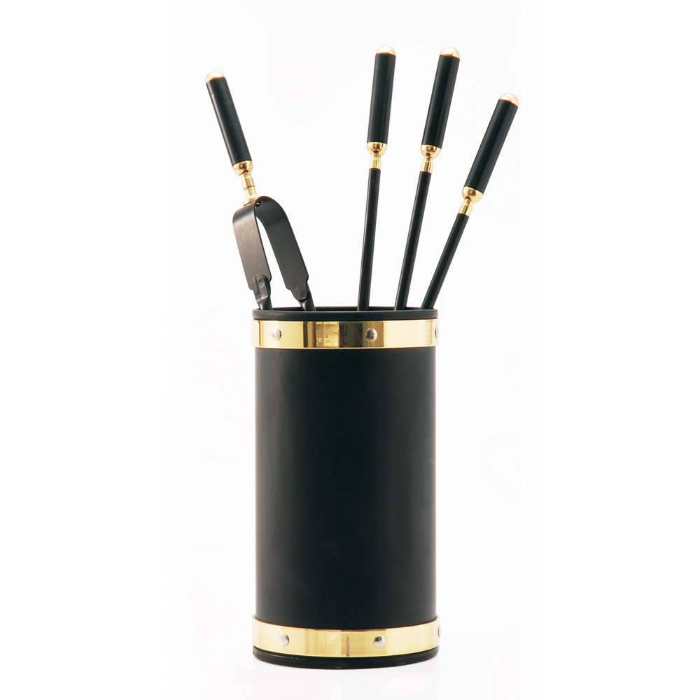 Βαρελάκι εργαλείων μαύρο με ματ νίκελ, με μεταλικούς καμπαράδες στην όψη, ΔΕΝ ΔΙΑΘΕΤΕΙ τα εργαλεία τζακιού