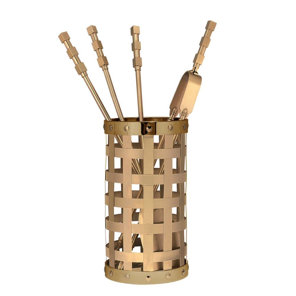 Βαρελάκι εργαλείων με μοντέρνο σχεδιασμό σε απόχρωση ΟΡΟ – ΜΑΤ ΟΡΟ, ΔΕΝ ΔΙΑΘΕΤΕΙ εργαλεία τζακιού, έχει διάμετρο 18cm και ύψος 33cm