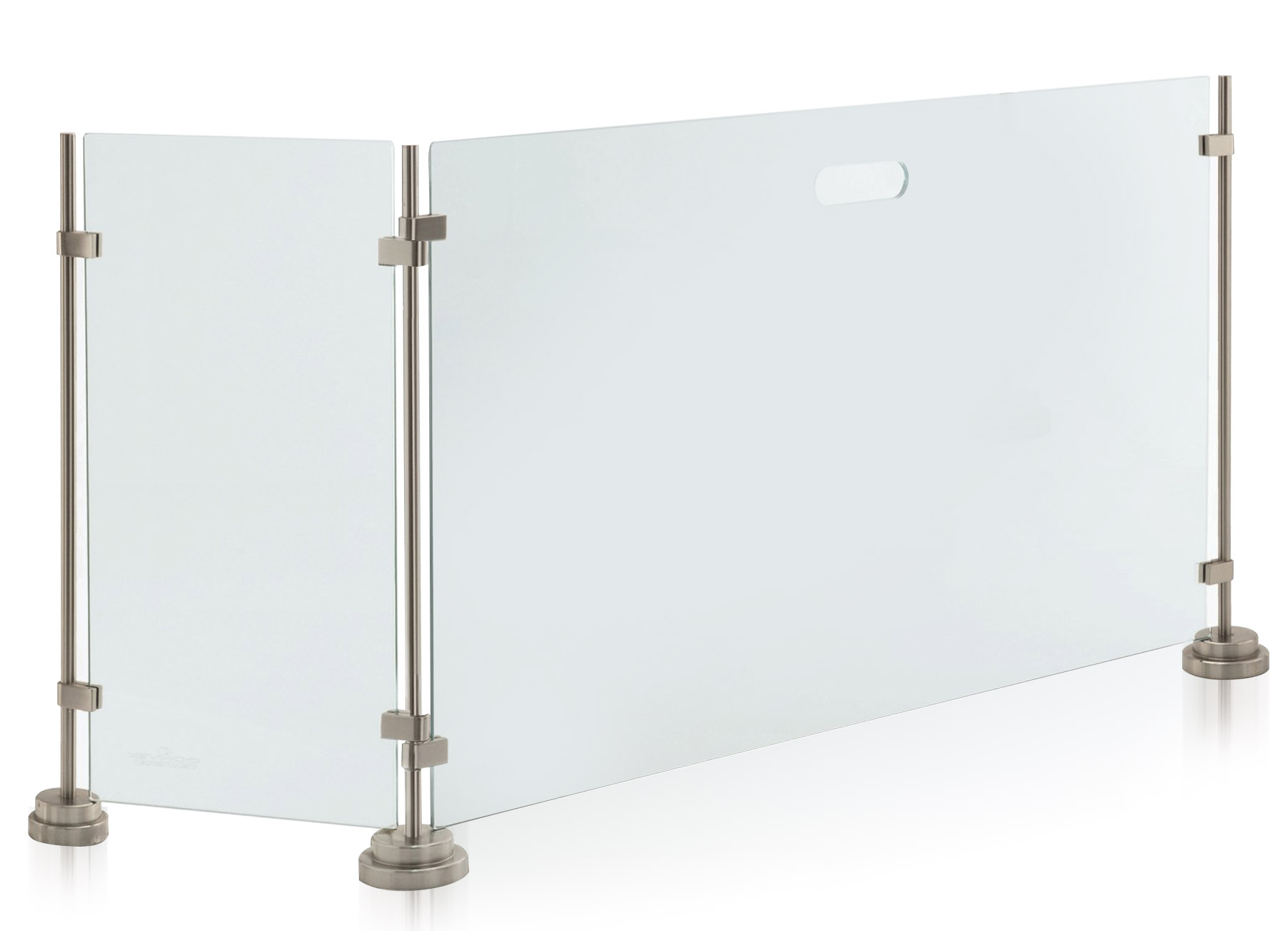 Γυάλινο πυρίμαχο προστατευτικό με προ’εκταση γωνία, το οποίο διακρίνεται για τη μεγάλη του αντοχή σε υψηλές θερμοκρασίες, ενώ διακοσμεί κομψά και διακριτικά τον χώρο σας.