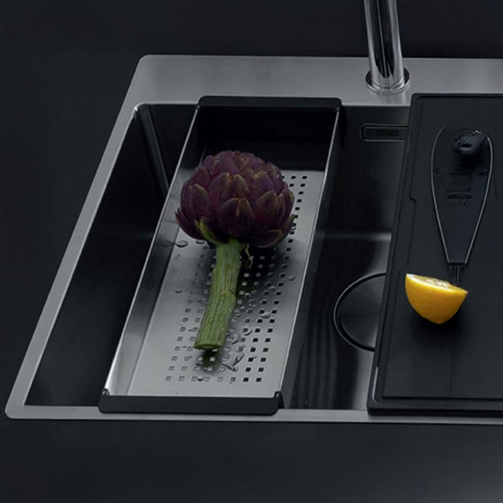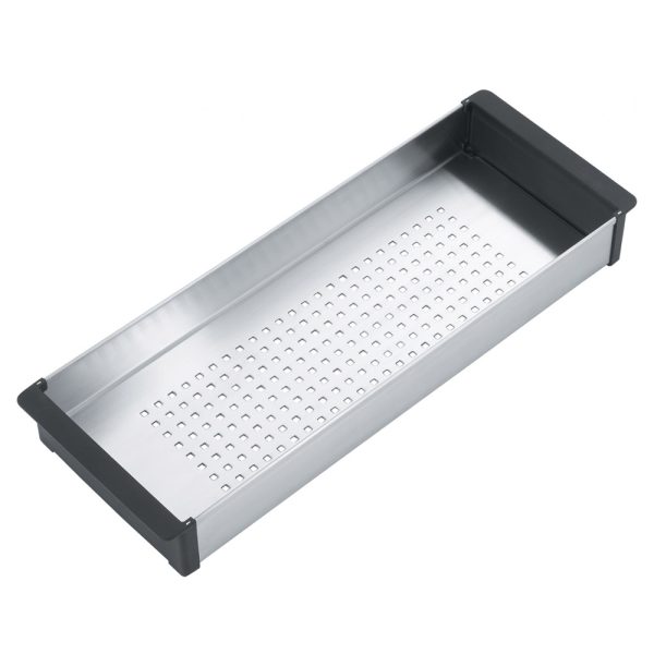 Ανοξείδωτο στραγγιστικό μπωλ με συνθετικές λαβές, 156x429x53mm