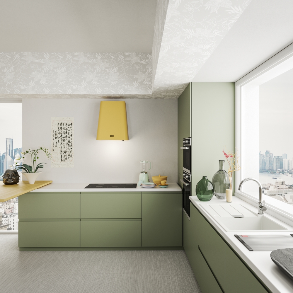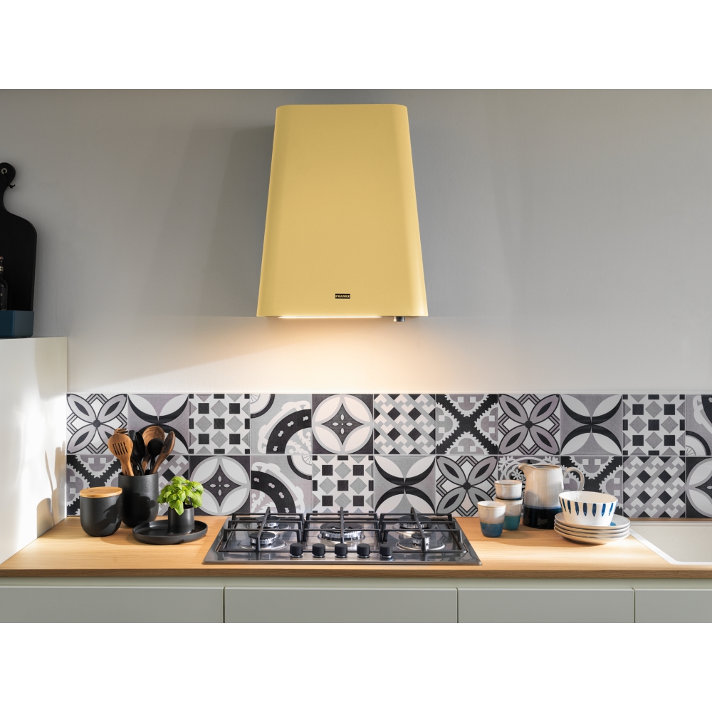 Επιτοίχια καμινάδα Smart Deco FSMD 508 YL, 50cm, ηλεκτρονικός χειρισμός με push buttons,3 βαθμίδες ισχύος, dusty mustard