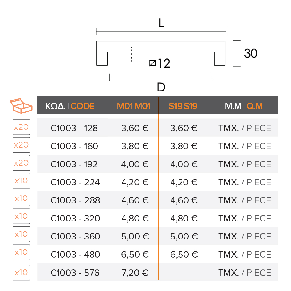 Λαβή Επίπλου C1003 Τετράγωνη