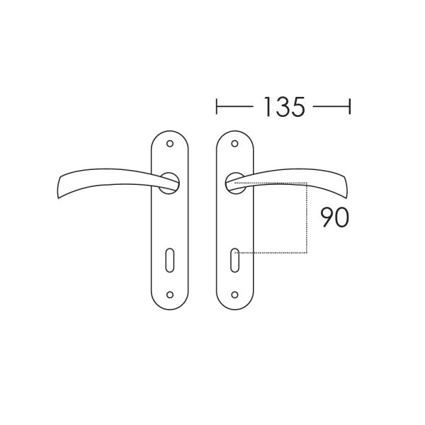 Μια κλασική ανοξείδωτη χειρολαβή πόρτας, χωρίς σχεδιαστικές υπερβολές που χρησιμοποιείται τόσο σε σπίτι, όσο και σε επαγγελματικούς χώρους. Η πλάκα που διαθέτει, προσδίδει χαρακτηριστικό όγκο στην πόρτα σας και βγαινει σε 2 μεγεθη(απόσταση μεταξύ οπής και καρέ)