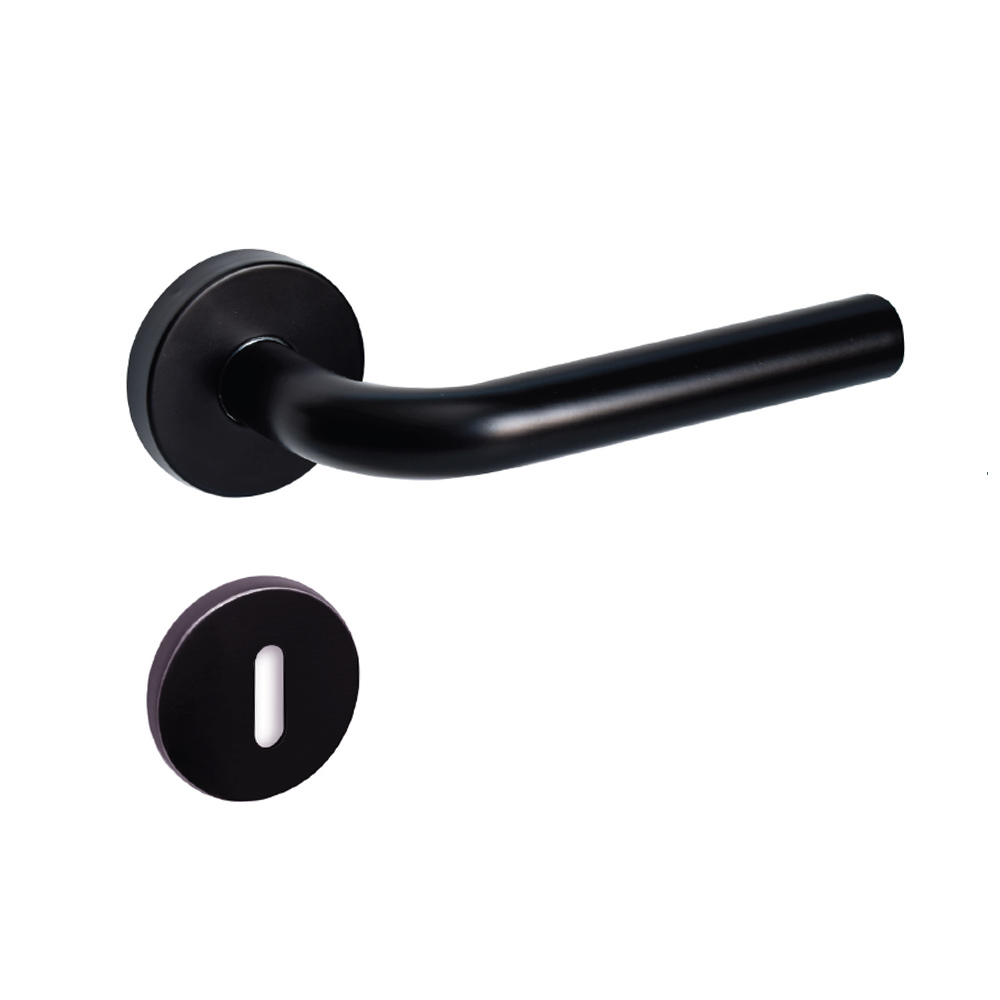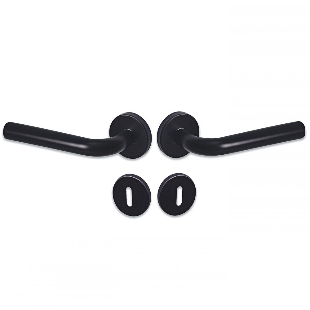 Zευγάρι πόμολα σε ροζέτα, με επιστόμιο κλειδιού, για ΜΕΣΟΠΟΡΤΕΣ! σε Μαύρο Ματ.