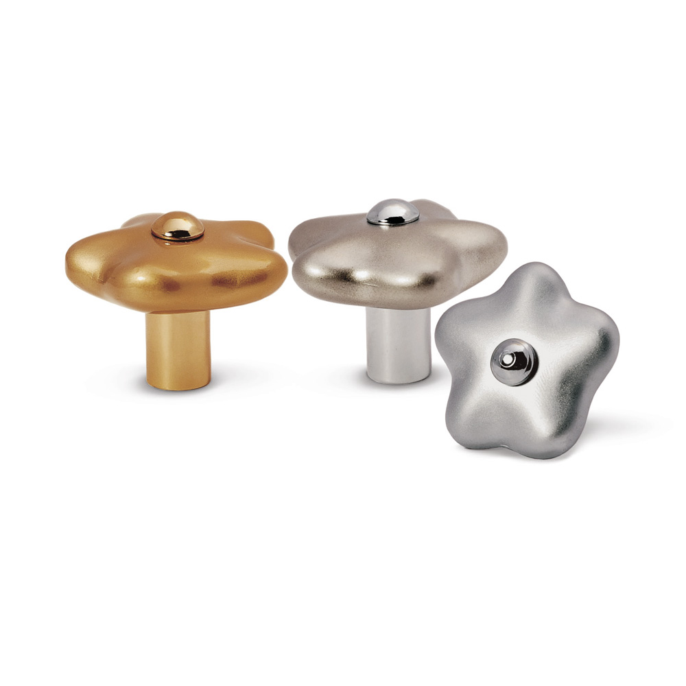 Πόμολο επίπλου λουλουδάκι σε κομψό και λειτουργικό design, κατάλληλο για ντουλάπια κουζίνας και για όλες τις ντουλάπες. Διατίθεται σε τρείς χρωματικές επιλογές Χρώμιο – Σατέν Νίκελ, Χρώμιο – Σατέν Χρώμιο και Όρο – Σατέν Όρο.