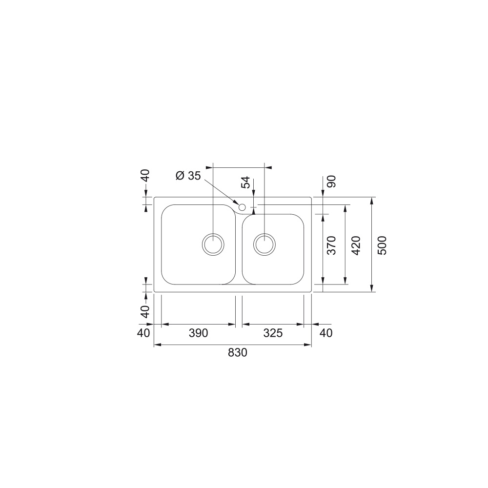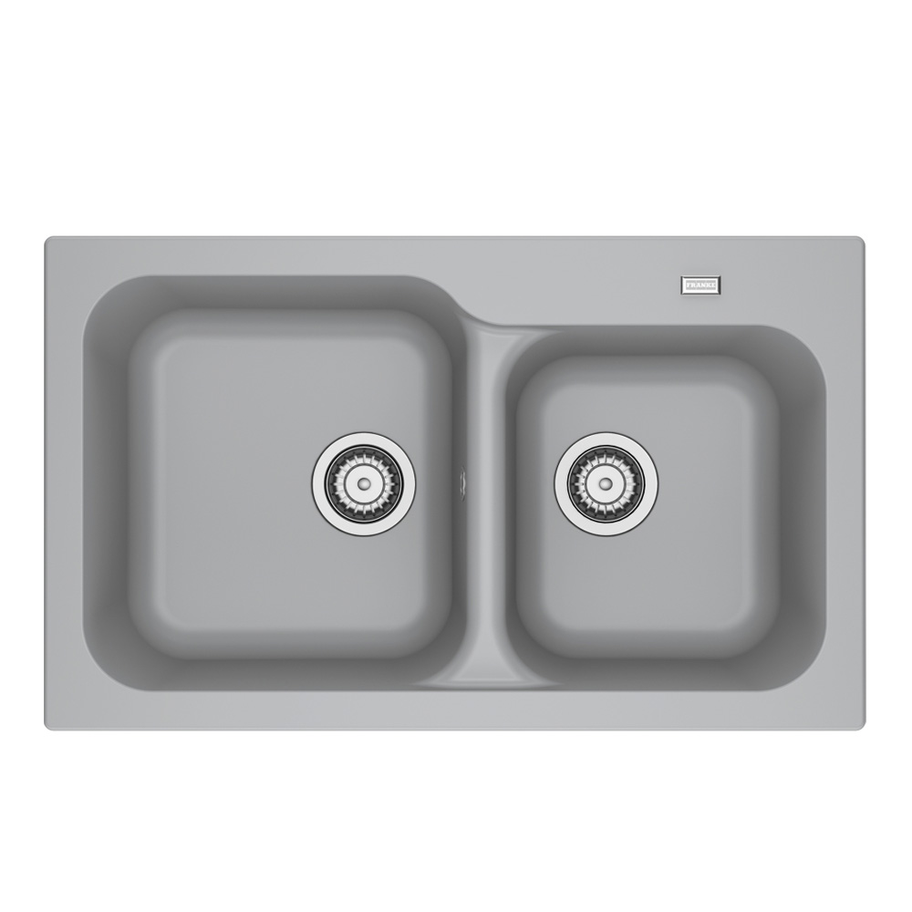Γρανιτένιος Νεροχύτης KITE KID 620-39-33 Grey, 830x500mm με 2 bowl, Ένθετη τοποθέτηση, βάση για ντουλάπι 80 cm, 30 χρόνια εγγύηση