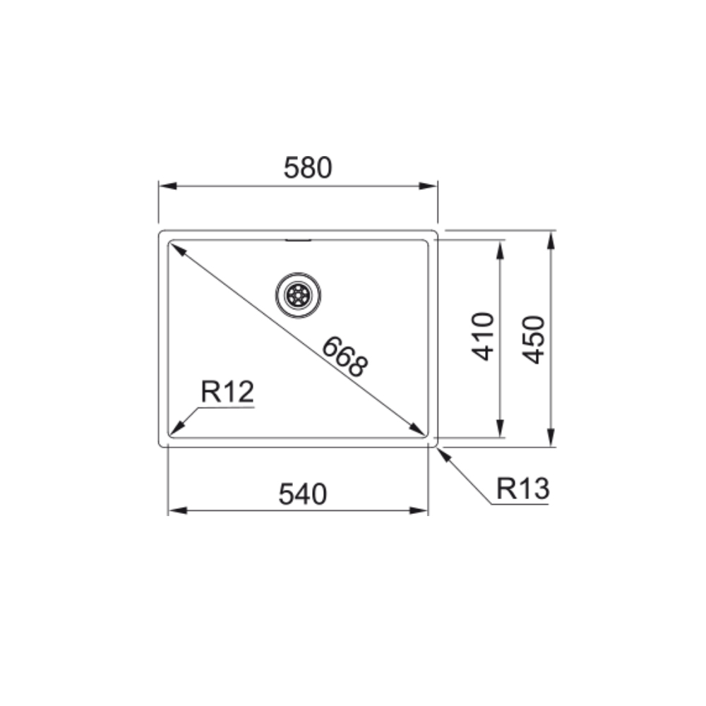 Ανοξείδωτος Νεροχύτης SQUARE BXX 210-54 580x450mm Inox Flushmount/Ένθετη/Υποκαθήμενη τοποθέτηση Σετ , βάση για ντουλάπι 60cm , 30 χρόνια εγγύηση