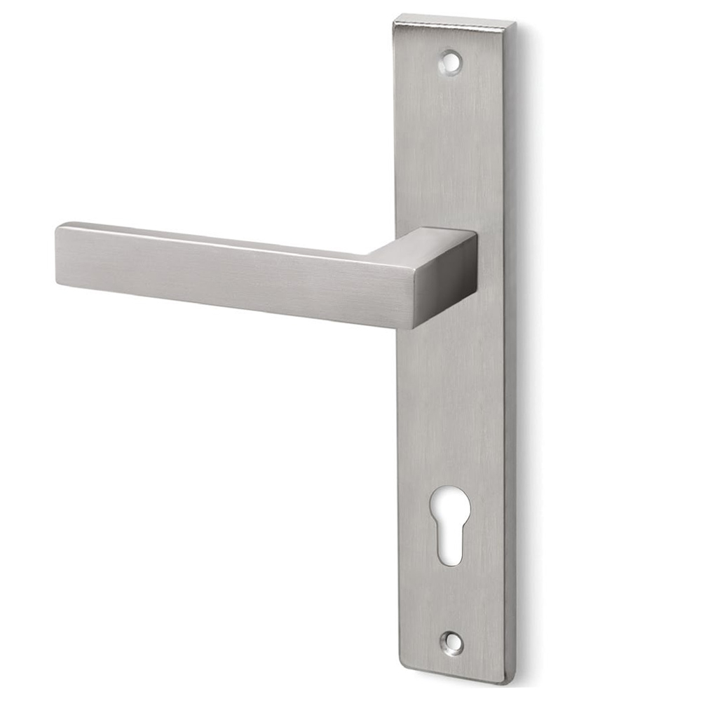 Πόμολο πόρτας σε πλάκα τετράγωνου σχεδιασμού, σε απόχρωση Νίκελ ματ/Inox και Μαύρο, με άψογο φινίρισμα. Μοντέρνο και διαχρονικό design που προσδίδει στην πόρτα σας μια ιδιαίτερη αίσθηση πολυτέλειας, χωρίς όμως να θυσιάζει την εργονομία και την χρηστικότητα.